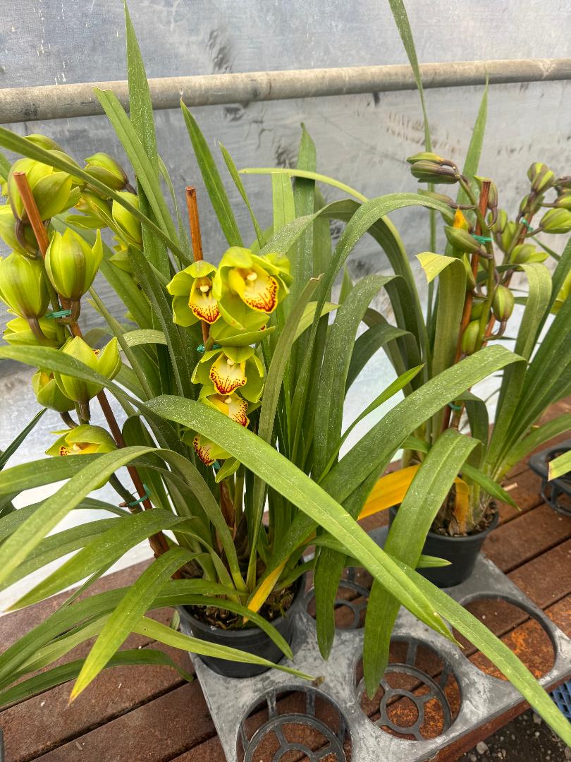 Cymbidium Orchid Plants - Green Yellow - 2 Feet tall - 2 Bulbs - Ship in 6" Pot