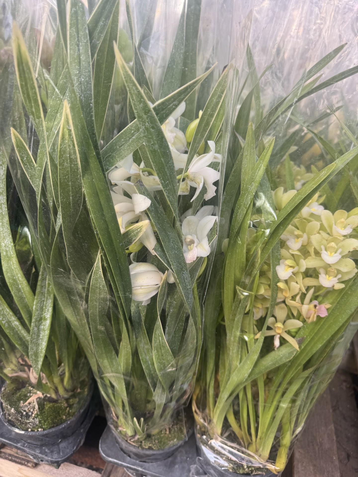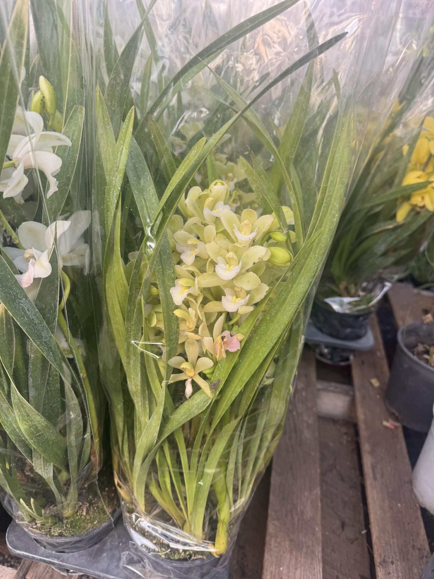 Cymbidium Orchid Plants - green white- 2 Feet tall - 2 Bulbs - Ship in 6" Pot